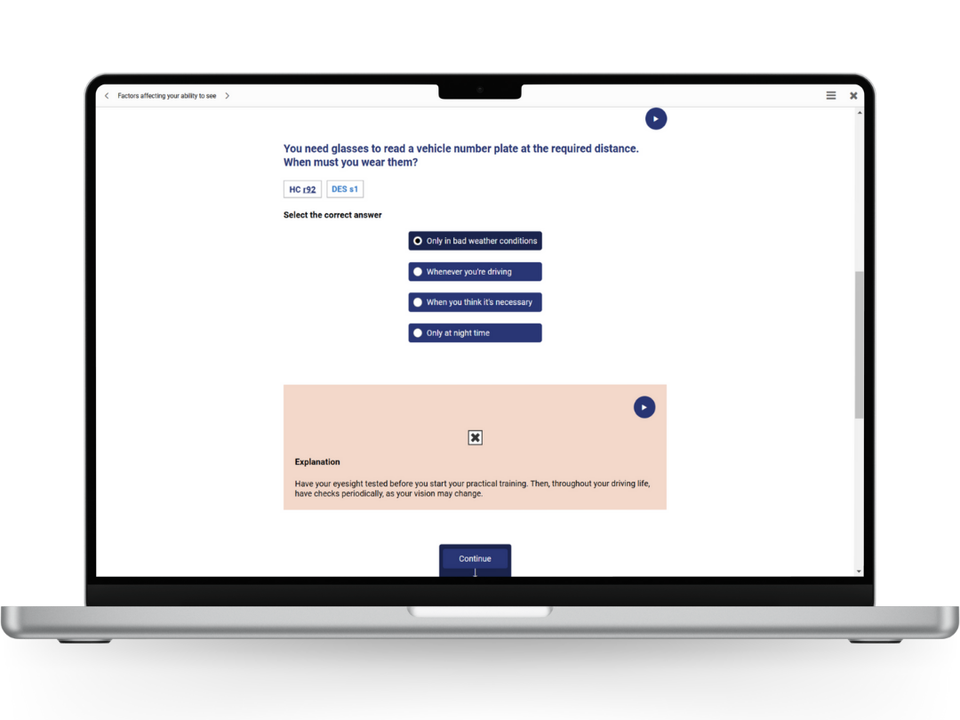 DVSA e-learning can be used by any organisation that trains drivers to pass their theory test or to improve the safety of their drivers.